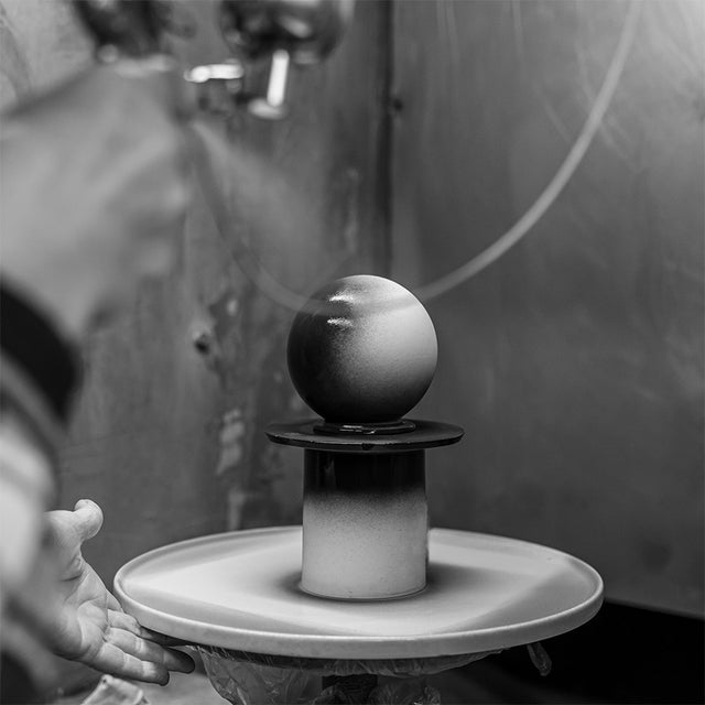 Ces prēcieuses piēces sont ēmaillēes une ā une, avec un noir profond, ce qui leur confēre un aspect doux, mat et peu conventionnel pour de la porcelaine.